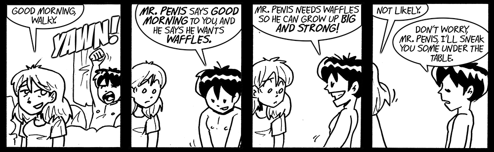 Originally, this stand-alone strip ran on a Saturday in the middle of the Elopement Storyline, but published technically before the actual Eloping Attempt strips did. Recontextualized, this has been upgraded from Sinful Premarital Hanky Panky to Potentially God-Approved Fuckin’. See […] ↓ Read the rest of this entry…