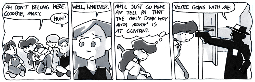 Let’s ignore panel two’s Worst Drawing Of Mary Ever and contemplate the possible subtext involved in the protagonist of this story getting up and leaving my church because it no longer fits her anymore. Back then, I was a little […] ↓ Read the rest of this entry…