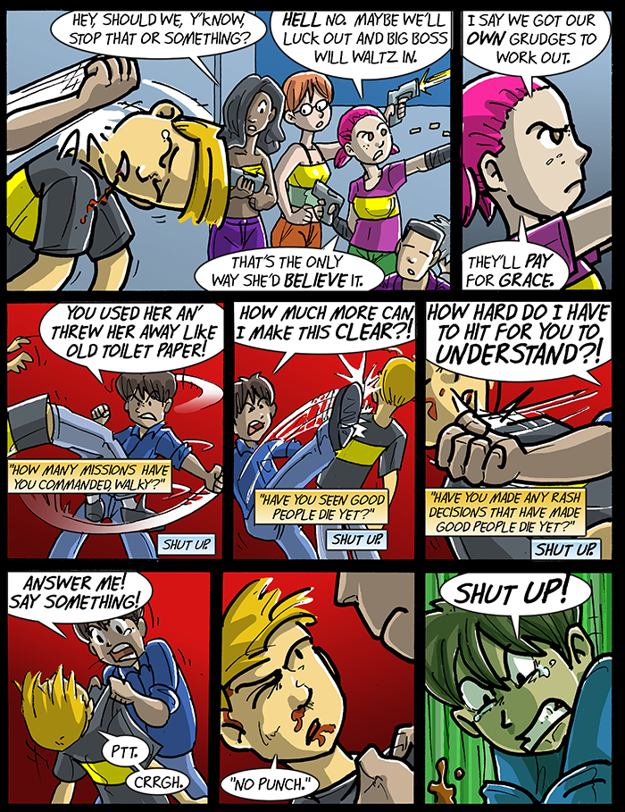 It was about this time that I realized I’d never actually put Bloodrose solidly on panel, and for all the narrative figured, Squad 135 was only 4 people. And so I decided to lampshade it. I cannot confirm nor deny […] ↓ Read the rest of this entry…